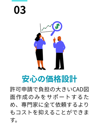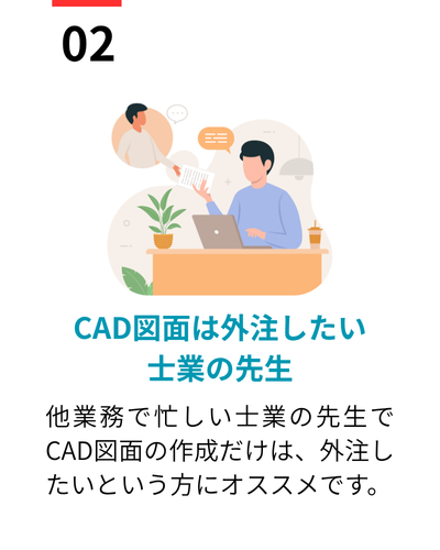 納期は作成する図面の規模や要件によって異なりますが、2週間程度あれば納品可能です。